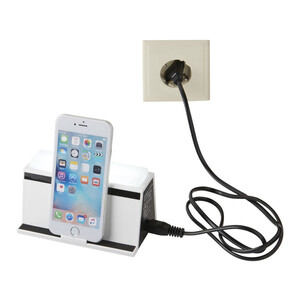 Беспроводная зарядная станция Lunation. Сбываются мечты о зарядке смартфонов без кабелей. Просто поместите свое устройство на станцию, и оно будет полностью заряжено. В ней также есть 4 дополнительных разъема USB для подключения дополнительных устройств. Предлагается в белой подарочной коробке. АБС-пластик.Вы можете купить по низким ценам беспроводную зарядную станцию Lunation, белую с вашим логотипом прямо сейчас, купив быструю доставку