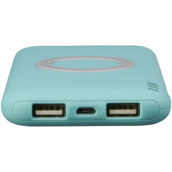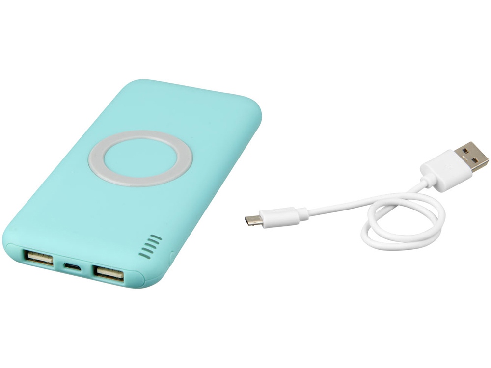 Беспроводное зарядное устройство Coma 6000 мА/ч. Беспроводное зарядное устройство Coma оснащено аккумулятором емкостью 6000 мА/ч для зарядки устройств без кабеля в кратчайший срок. Вы можете заряжать поддерживаемые устройства, просто положив их на зарядное устройство. Зарядное устройство легко включается и выключается с помощью одной кнопки питания, а 5 светодиодов показывают уровни мощности и зарядки. В комплект входит кабель для зарядки USB/micro USB. Предлагается в белой подарочной коробке. АБС-пластик.Вы можете купить по низким ценам беспроводное зарядное устройство Coma 6000 мА/ч, мятное с нанесением прямо сейчас, оформив доставку курьером
