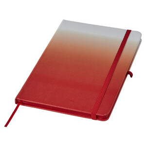Блокнот Gradient. Блокнот А5 с резинкой-застежкой в цвет и петелькой для ручки. 80 листов линованной бумаги (70 г/м). ПВХ.Вы можете купить из наличия блокнот А5 Gradient, красный с вашим логотипом прямо сейчас, оформив быструю доставку