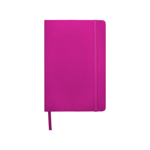 Блокнот Spectrum A5. Блокнот А5 с застежкой резинкой в цвет и закладкой. 96 листов линованной бумаги (60 г/м2). Картон с покрытием ПВХ.Вы можете купить по низким ценам блокнот А5 "Spectrum", розовый с вашим логотипом прямо сейчас, оформив доставку курьером