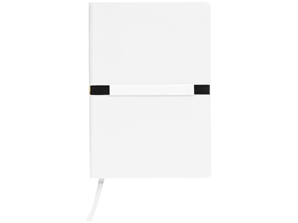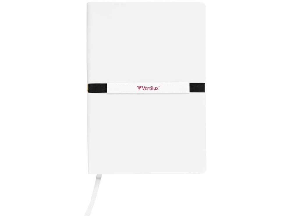Блокнот Stretto A5. Стильный блокнот (размера A5) с отличной возможностью нанесения благодаря прочной резинке, прикрепленной к корешку, со специальной областью для нанесения изображения. Блокнот с 96 листами линованной бумаги (80 г/м²) предлагается в подарочной коробке- рукав Journalbooks. Термополиуретан.Вы можете купить по низким ценам блокнот А5 "Stretto", белый с вашим логотипом прямо сейчас, купив доставку курьером