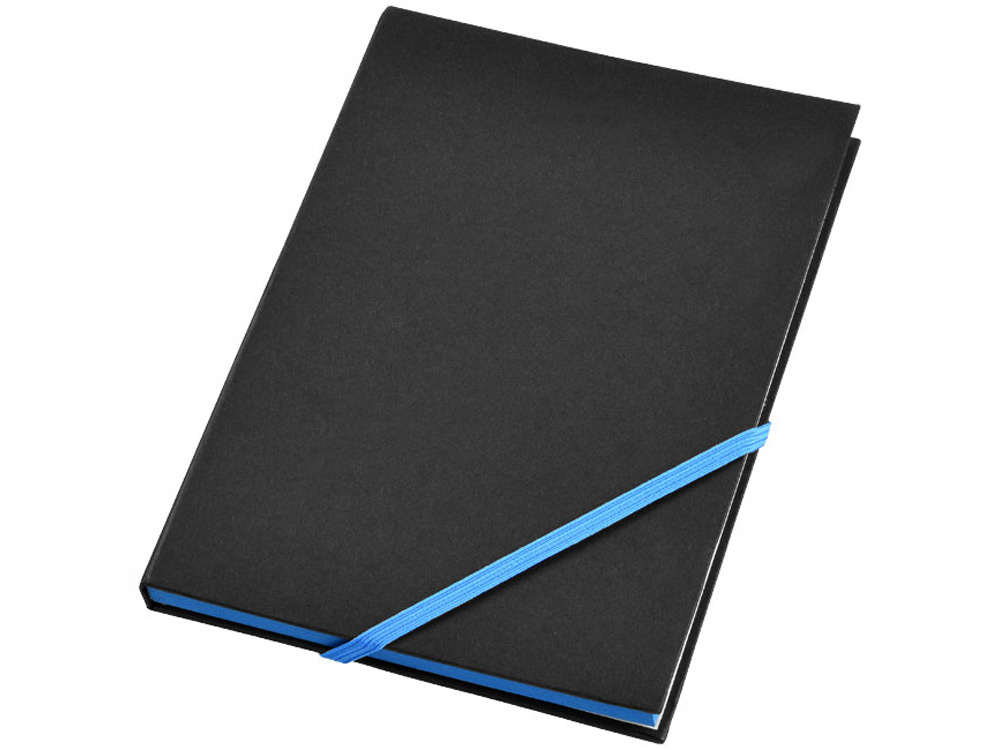 Блокнот, ориентировочный формат A5 с 80 листами бежевой бумаги (70 г/м²) с диагональной эластичной застежкой и яркими неоновыми краями.Вы можете купить из наличия блокнот А5 "Travers", черный/голубой с вашим логотипом прямо сейчас, купив доставку курьером