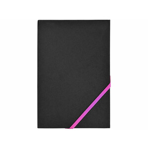 Блокнот, ориентировочный формат A5 с 80 листами бежевой бумаги (70 г/м²) с диагональной эластичной застежкой и яркими неоновыми краями.Вы можете купить из наличия блокнот А5 "Travers", черный/розовый с нанесением прямо сейчас, оформив быструю доставку
