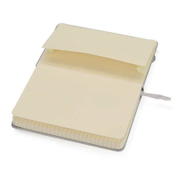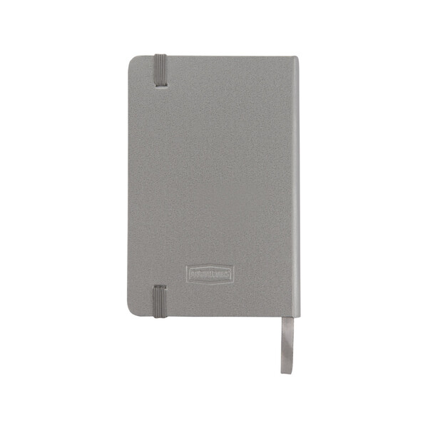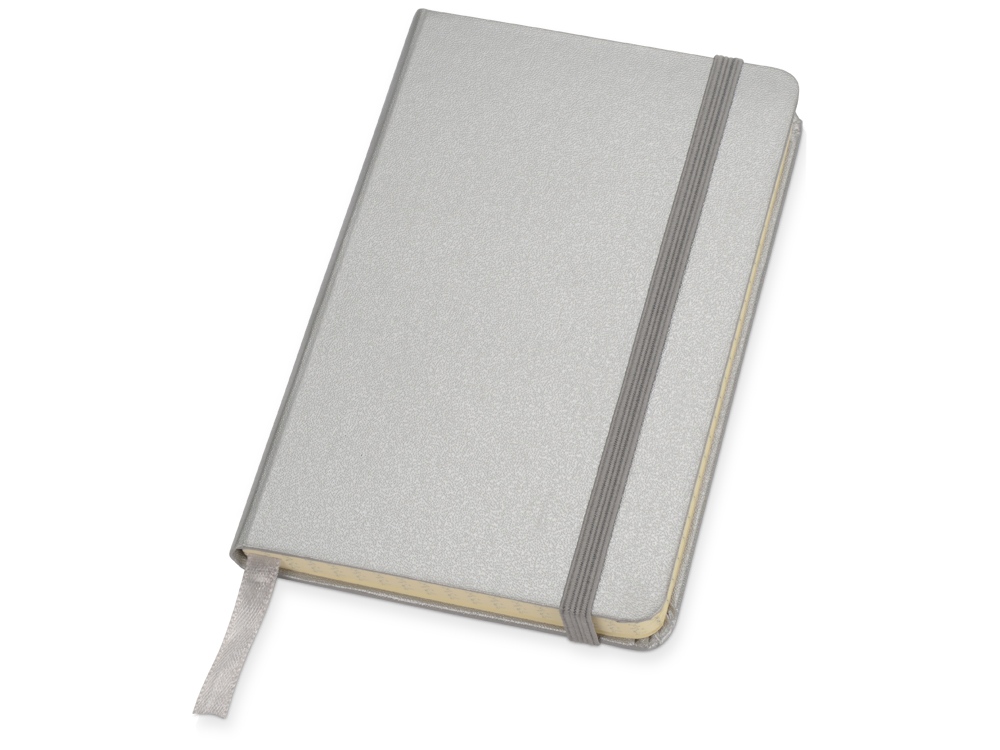 Удобный блокнот в твердой обложке с эластичной застежкой и закладкой. Формат А6. 80 листов бумаги в клетку. На плотную обложку, стилизованную под искусственную кожу, можно сделать нанесение логотипа вашей компании.Вы можете купить по низким ценам блокнот А6 классический, серебристый с нанесением прямо сейчас, заказав быструю доставку