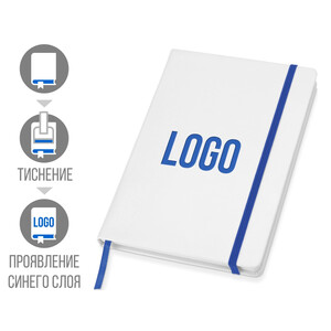 Белый линованный блокнот формата А6 с закладкой и эластичной застежкой идеально подойдет для записи секретов. Еще одна тайна спрятана в его обложке – под ее верхним слоем белого цвета скрыт контрастный фон, который становится виден при тиснении.Вы можете купить по низким ценам блокнот А6 "Secret", синий с вашим логотипом прямо сейчас, заказав доставку курьером