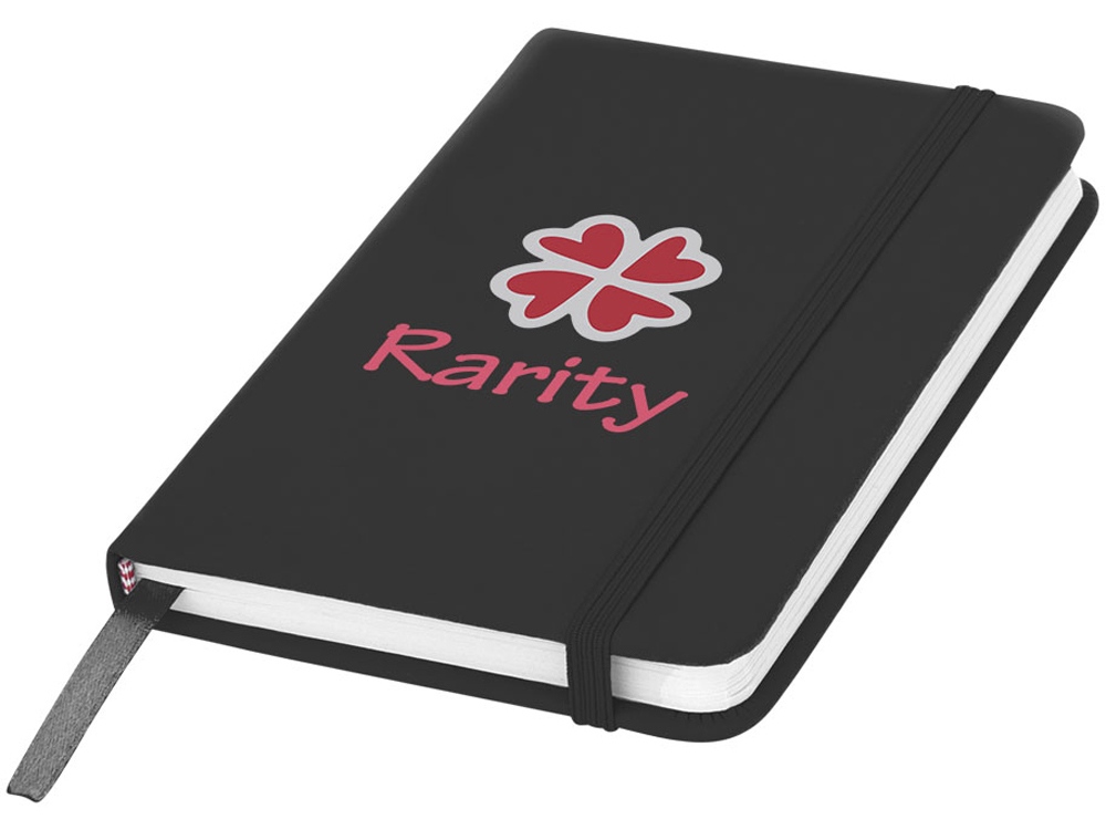 Блокнот Spectrum A6. Блокнот А6 с эластичной застежкой в цвет и закладкой. 96 листов линованной бумаги (60 г/м2). Картон с покрытием ПВХ.Вы можете купить по низким ценам блокнот А6 "Spectrum", чёрный с нанесением прямо сейчас, заказав доставку курьером