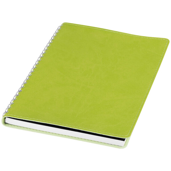 Блокнот Brinc А5. 120 листов (70 г/м2) белой линованной бумаги. ПВХ.Вы можете купить по низким ценам блокнот Brinc А5, лайм/серебристый с вашим логотипом прямо сейчас, купив доставку курьером