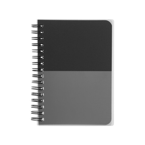 Блокнот Colour Block А6. Блокнот А6 на спирали. 70 листов линованной бумаги (70г/м²). ПП пластик.Вы можете купить из наличия блокнот Colour Block А6, чёрный с вашим логотипом прямо сейчас, купив быструю доставку