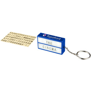 Брелок - фонарик Cinema. Фонарик, напоминающий ретро кинопроигрыватель. В комплекте стикеры с 75 буквами, цифрами и знаками, для создания слов и текстов. Металлическое колечко. Батарейки в комплекте. АБС пластик.Вы можете купить по низким ценам брелок - фонарик Cinema, ярко-синий с вашим логотипом прямо сейчас, заказав доставку курьером