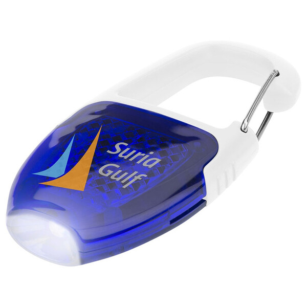 Брелок - фонарик с отражателем и карабином. Отражающий диодный фонарик с хромированным клипом и кнопкой включения/ выключения. Батарейки в комплекте. АБС пластик.Вы можете купить из наличия брелок - фонарик с отражателем и карабином, ярко-синий/белый с нанесением прямо сейчас, оформив доставку курьером
