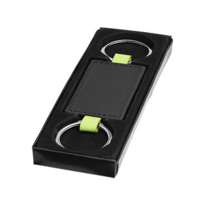 Брелок Felipe. Брелок "под кожу" с цветными краями. Два колечка на ключи. Упакован в черную коробку. ПВХ.Вы можете купить по низким ценам брелок Felipe, черный/лайм/серебристый с нанесением прямо сейчас, купив доставку курьером