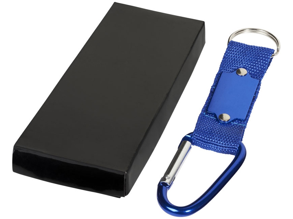 Брелок с карабином. Брелок с алюминиевым карабином и металлической пластиной. Предлагается в черной подарочной коробке. Карабин не предназначен для лазанья. Алюминий.Вы можете купить по низким ценам брелок с карабином, синий с вашим логотипом прямо сейчас, заказав доставку курьером
