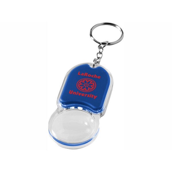 Удобный брелок с увеличительным стеклом и фонариком для ключей с выключателем на задней стороне. Металлическое кольцо для ключей Ø 25 мм.Вы можете купить из наличия брелок "Zoomy" с увеличительным стеклом и фонариком, ярко-синий с вашим логотипом прямо сейчас, оформив доставку курьером