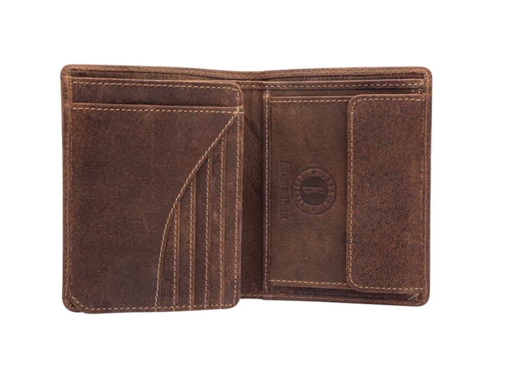 Бумажник мужской «Eric»,включает в себя восемь отделений для кредитных карт, одно отделение с прозрачным окошком, четыре скрытых боковых отделений, два отделения для купюр, позволяющие хранить купюры в развернутом виде, одно отделение для монет, закрывается на кнопку.Вы можете купить из наличия бумажника KLONDIKE «Eric» с вашим логотипом прямо сейчас, заказав доставку курьером