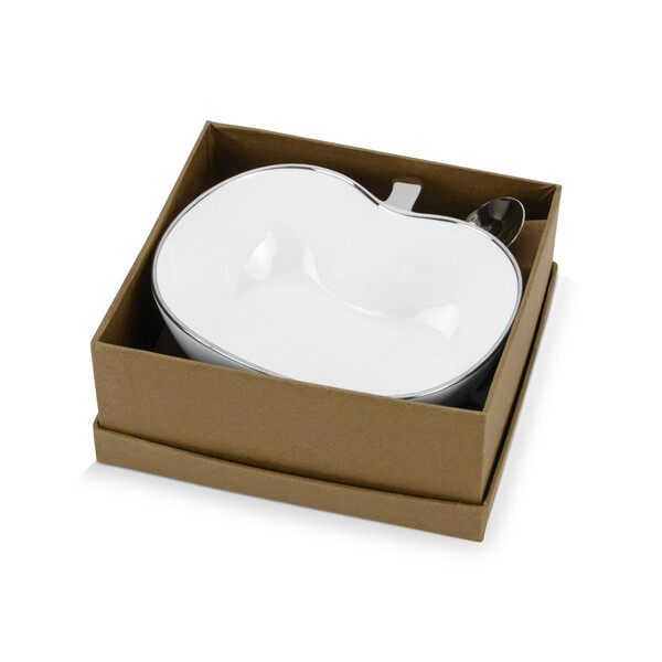 Белоснежная фарфоровая чаша на 400 мл в виде половинки яблока с металлической ложкой замечательно подойдет в качестве подарка, который может стать эксклюзивным, стоит только нанести на него выбранное вами изображение.Вы можете купить по низким ценам чашу в форме яблока на 400 мл с металлической ложкой с вашим логотипом прямо сейчас, купив доставку курьером