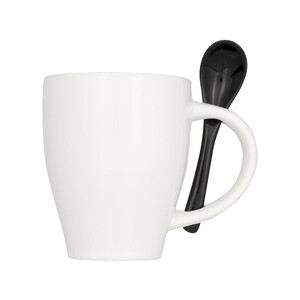 Чашка Nadu с ложкой. Керамическая кружка с модным дизайном и присоединенным держателем для ложки в ручке. Внутренняя часть кружки окрашена тем же цветом, что и ложка. Соответствует требованиям EN12875-1; подходит для мытья в посудомоечной машине даже после украшения. Объем — 250 мл. Представлена в белой картонной коробке. Керамика.Вы можете купить по низким ценам чашку Nadu с ложкой, чёрную с нанесением прямо сейчас, купив быструю доставку