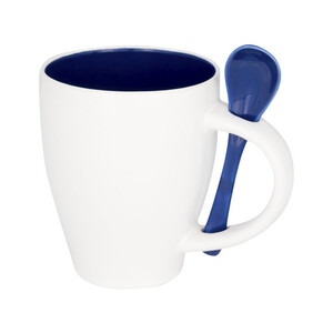 Чашка Nadu с ложкой. Керамическая кружка с модным дизайном и присоединенным держателем для ложки в ручке. Внутренняя часть кружки окрашена тем же цветом, что и ложка. Соответствует требованиям EN12875-1; подходит для мытья в посудомоечной машине даже после украшения. Объем — 250 мл. Представлена в белой картонной коробке. Керамика.Вы можете купить из наличия чашку Nadu с ложкой, синюю с нанесением прямо сейчас, купив быструю доставку