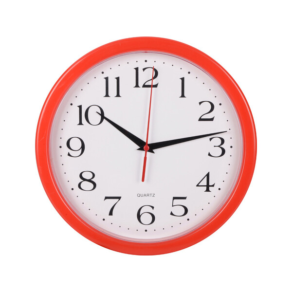 Классические настенные часы с крупным циферблатом. Благодаря яркому цвету корпуса будут хорошо смотреться в офисе с современным дизайном. На циферблат можно нанести информацию о вашей компании.