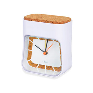 Cork – оригинальные настольные часы с декором из пробкового дерева. К пробковой поверхности можно прикреплять записки с помощью кнопок или булавок. Эти часы с будильником станут необычным и привлекательным подарком для тех, кто ценит свое время и тепло натуральных материалов.Вы можете купить по низким ценам часы настольные "Cork", белый/коричневые с вашим логотипом прямо сейчас, заказав доставку курьером