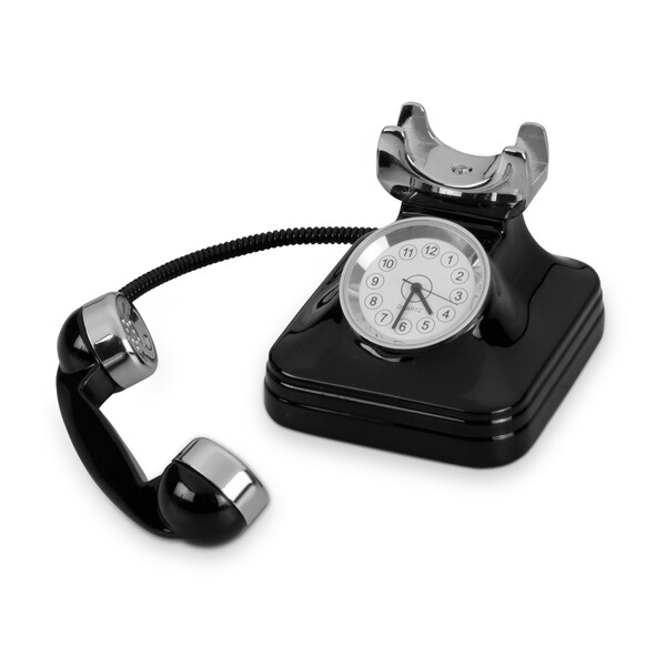 Вы можете купить по низким ценам часы «Ретро-телефон», чёрные с вашим логотипом прямо сейчас, оформив доставку курьером