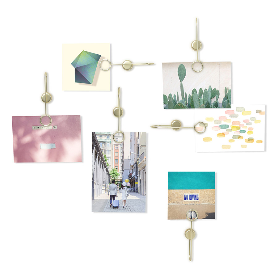 Нестандартная фоторамка, которая поможет создать уникальный коллаж из фотографий, рисунков или вырезок из журналов. Клипсы Phantom как будто специально придуманы для любителей мудбордов. Просто закрепите клипсы на стене горизонтально или вертикально и вставьте фото или рисунок в металлический зажим. К стене клипсы крепятся при помощи липучек 3M Command, поэтому под них не придётся ничего сверлить. В набор входит 6 фоторамок-клипс. Дизайнер Sung wook ParkВы можете купить по низким ценам Держатели для фотографий phantom латунь с нанесением прямо сейчас, заказав быструю доставку