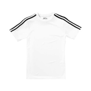 Женская футболка с короткими рукавами Baseline. Стандартный покрой. Стропы контрастного цвета на рукавах. Принт Slazenger на шве слева. Cool Fit. Сетчатый материал, 100% полиэстер с дышащей поверхностью. 145 г/м².Вы можете купить из наличия футболку "Baseline" женская, белый/черную с вашим логотипом прямо сейчас, заказав доставку курьером