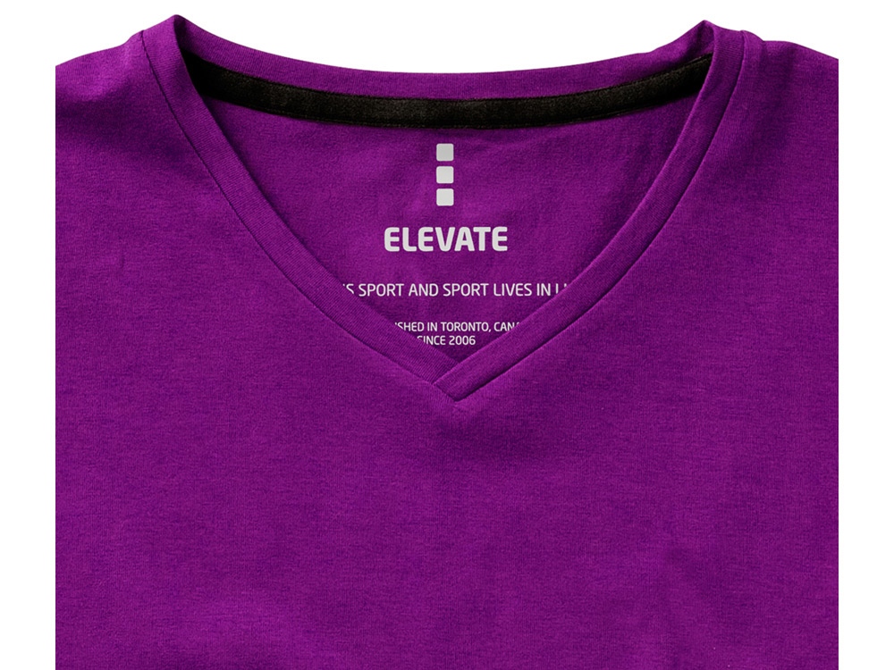 Футболка с короткими рукавами Kawartha. Стандартный покрой. V-образная горловина. Воротник из ткани изделия. Принт сзади. Атласная лента от плеча к плечу. Детали со швами Pick-Stitch. Хлопковая хорошо растягивающаяся ткань. Приятный на ощупь материал. Однослойная джерси, 95% органический хлопок кольцевого способа прядения и 5% эластан. 200 г/м².Вы можете купить из наличия футболку "Kawartha" мужскую с V-образным вырезом, тёмно-фиолетовую с вашим логотипом прямо сейчас, оформив быструю доставку