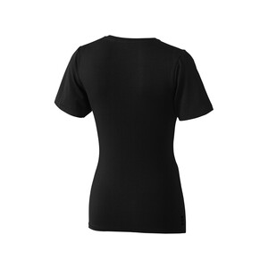 Женская футболка с короткими рукавами Kawartha. Стандартный покрой. V-образная горловина. Воротник из ткани изделия. Принт сзади. Атласная лента от плеча к плечу. Детали со швами Pick-Stitch. Хлопковая хорошо растягивающаяся ткань. Приятный на ощупь материал. Однослойная джерси, 95% органический хлопок кольцевого способа прядения и 5% эластан. 200 г/м².Вы можете купить из наличия футболку "Kawartha" женскую с V-образным вырезом, чёрную с нанесением прямо сейчас, заказав быструю доставку
