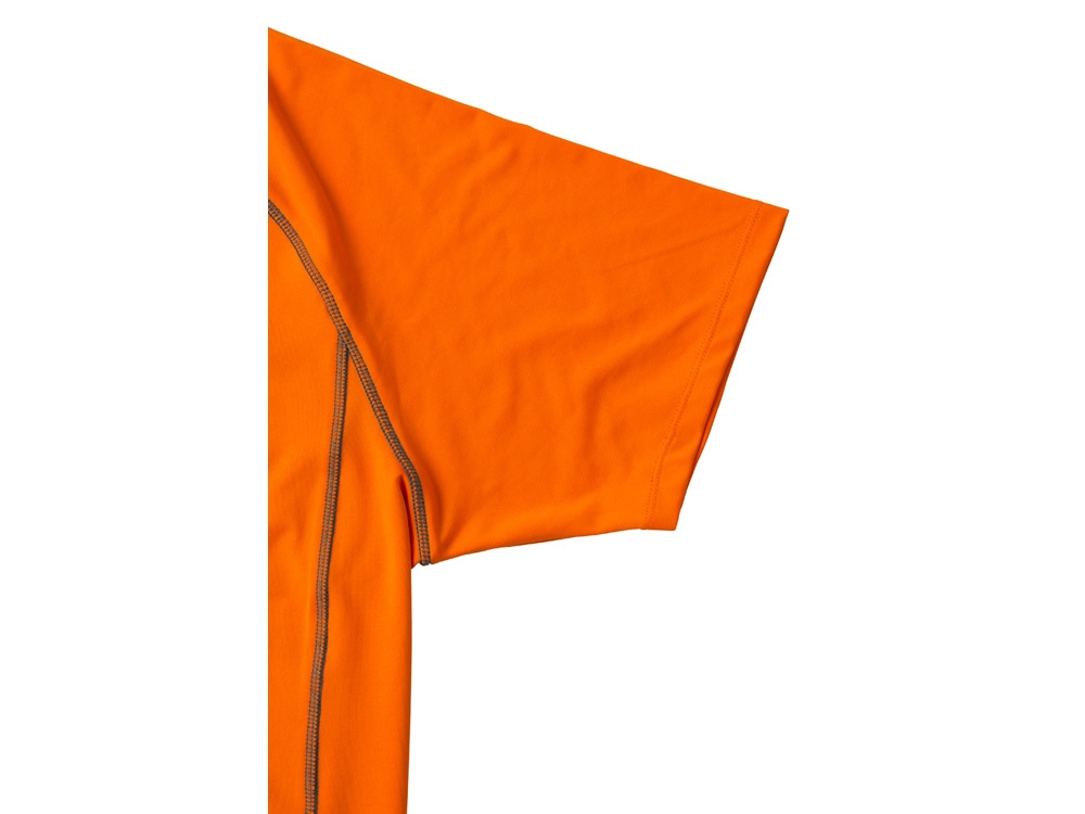 Футболка с короткими рукавами Kingston. Стандартный покрой. Атласная лента внутри горловины. Воротник из ткани изделия. Cool Fit. Отражающий лого сзади. Узкие контрастные полоски на рукавах реглан. Небольшой двойной шов на рукаве и внизу на кромке. Фигурные швы. Однослойная джерси, 88% полиэстер и 12% эластан. 200 г/м².Вы можете купить по низким ценам футболку "Kingston" мужская, оранжевую с нанесением прямо сейчас, купив доставку курьером