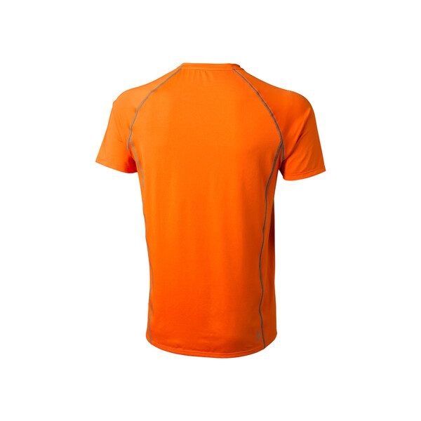 Футболка с короткими рукавами Kingston. Стандартный покрой. Атласная лента внутри горловины. Воротник из ткани изделия. Cool Fit. Отражающий лого сзади. Узкие контрастные полоски на рукавах реглан. Небольшой двойной шов на рукаве и внизу на кромке. Фигурные швы. Однослойная джерси, 88% полиэстер и 12% эластан. 200 г/м².Вы можете купить из наличия футболку "Kingston" мужская, оранжевую с вашим логотипом прямо сейчас, оформив доставку курьером