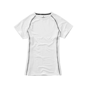 Женская футболка с короткими рукавами Kingston. Стандартный покрой. Атласная лента внутри горловины. Cool Fit. Отражающий лого сзади. Воротник из ткани изделия. Узкие контрастные полоски на рукавах реглан. Небольшой двойной шов на рукаве и внизу на кромке. Фигурные швы. Однослойная джерси, 88% полиэстер и 12% эластан. 200 г/м².Вы можете купить по низким ценам футболку "Kingston" женская, белую с вашим логотипом прямо сейчас, заказав доставку курьером