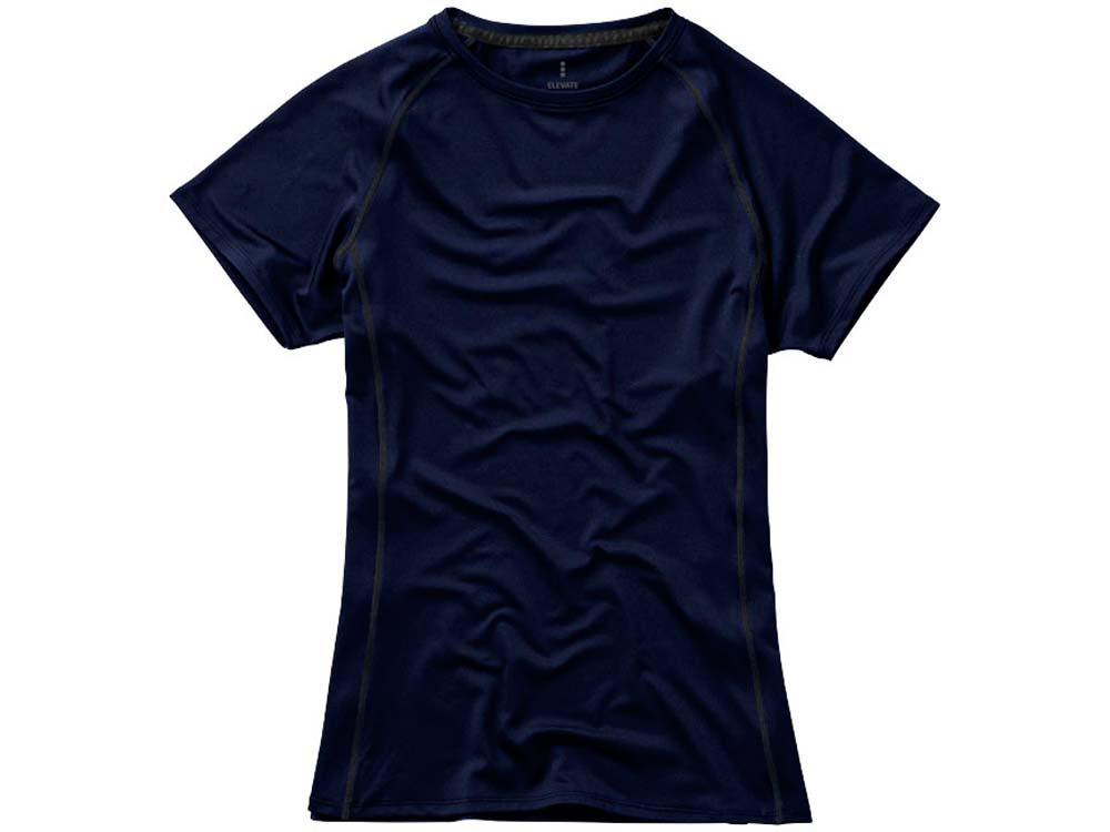 Женская футболка с короткими рукавами Kingston. Стандартный покрой. Атласная лента внутри горловины. Cool Fit. Отражающий лого сзади. Воротник из ткани изделия. Узкие контрастные полоски на рукавах реглан. Небольшой двойной шов на рукаве и внизу на кромке. Фигурные швы. Однослойная джерси, 88% полиэстер и 12% эластан. 200 г/м².Вы можете купить из наличия футболку "Kingston" женская, тёмно-синюю с нанесением прямо сейчас, заказав доставку курьером
