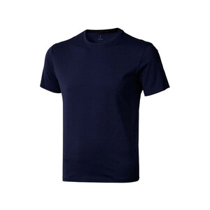 Футболка с короткими рукавами Nanaimo. Стандартный покрой. Атласная лента от плеча к плечу. Резинка 1х1 на воротнике. Приятный на ощупь материал. Принт сзади. Удобная для нанесения поверхность материала. Предварительная усадка. Детали со швами Pick-Stitch. Однослойная джерси гладкого переплетения, 100% чесаный хлопок кольцевого способа прядения. 160 г/м².Вы можете купить из наличия футболку "Nanaimo" мужская, тёмно-синюю с нанесением прямо сейчас, купив доставку курьером