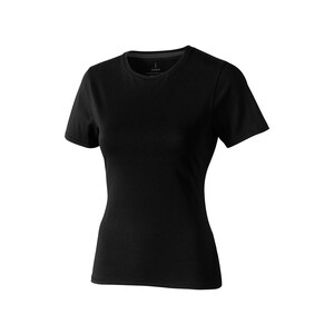 Женская футболка с короткими рукавами Nanaimo. Стандартный покрой. Резинка 1х1 на воротнике. Приятный на ощупь материал. Предварительная усадка. Атласная лента от плеча к плечу. Удобная для нанесения поверхность материала. Принт сзади. Детали со швами Pick-Stitch. Однослойная джерси гладкого переплетения, 100% чесаный хлопок кольцевого способа прядения. 160 г/м².Вы можете купить по низким ценам футболку "Nanaimo" женская, чёрную с вашим логотипом прямо сейчас, оформив быструю доставку