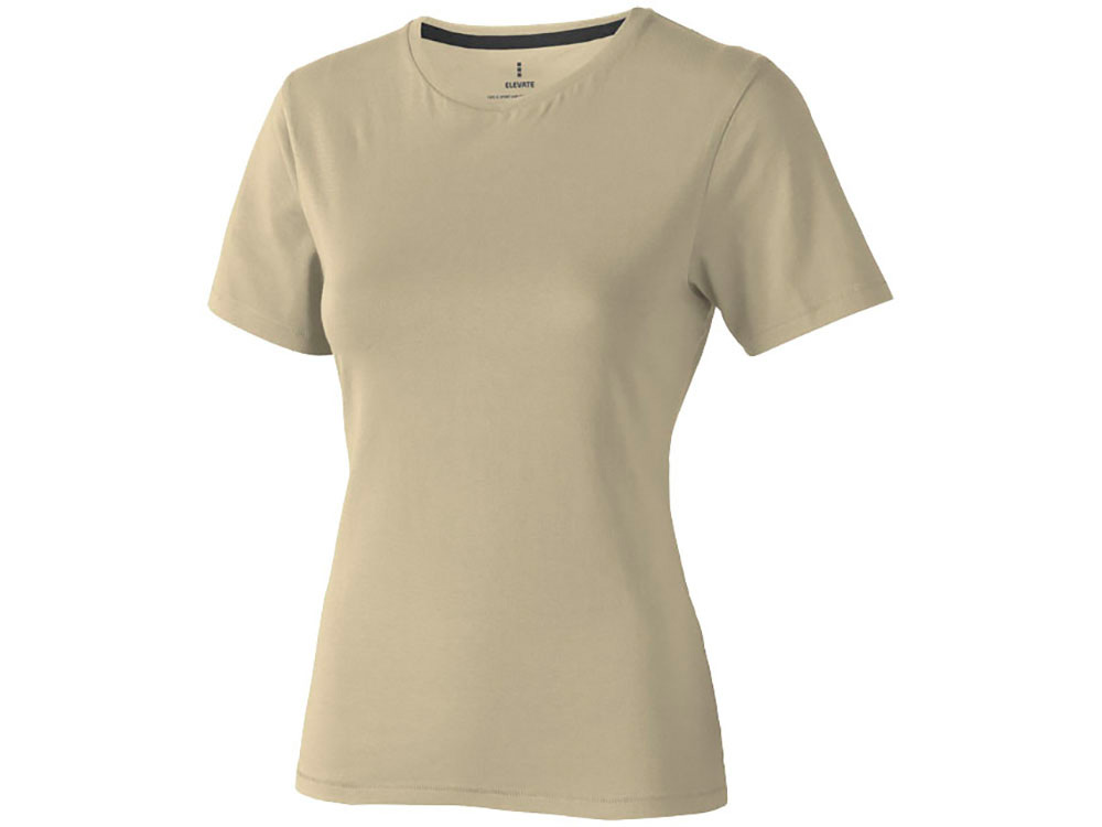 Женская футболка с короткими рукавами Nanaimo. Стандартный покрой. Резинка 1х1 на воротнике. Приятный на ощупь материал. Предварительная усадка. Атласная лента от плеча к плечу. Удобная для нанесения поверхность материала. Принт сзади. Детали со швами Pick-Stitch. Однослойная джерси гладкого переплетения, 100% чесаный хлопок кольцевого способа прядения. 160 г/м².Вы можете купить по низким ценам футболку "Nanaimo" женская, хаки с вашим логотипом прямо сейчас, оформив быструю доставку