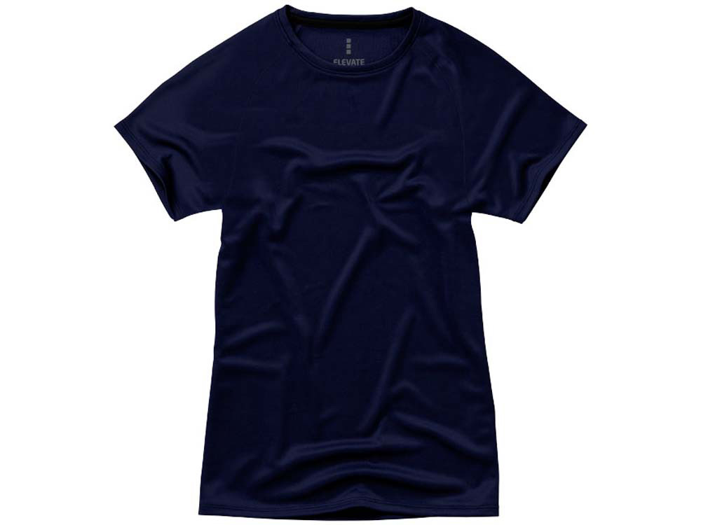 Женская футболка с короткими рукавами Niagara. Стандартный покрой. Отражающий лого сзади. Атласная лента внутри горловины. Тонкий шов на рукавах реглан. Небольшой двойной шов на рукаве и внизу на кромке. Cool Fit. Сетчатый материал, 100% полиэстер с дышащей поверхностью. 145 г/м².Вы можете купить из наличия футболку "Niagara" женская, тёмно-синюю с нанесением прямо сейчас, купив быструю доставку
