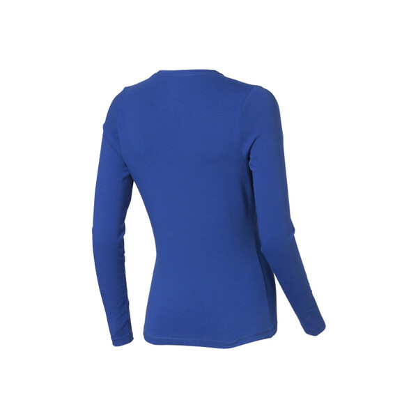 Женская футболка с длинными рукавами Ponoka. Стандартный покрой. Боковые швы. Детали со швами Pick-Stitch. Воротник из ткани изделия. Принт сзади. Атласная лента от плеча к плечу. Хлопковая хорошо растягивающаяся ткань. Однослойная джерси, 95% органический хлопок кольцевого способа прядения и 5% эластан. 200 г/м².Вы можете купить из наличия футболку "Ponoka" женскую с длинным рукавом, синюю с нанесением прямо сейчас, купив доставку курьером