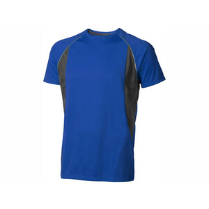 Футболка с короткими рукавами Quebec. Стандартный покрой. Атласная лента внутри горловины. Воротник из ткани изделия. Светоотражающие передние и задние швы на рукаве реглан. Отражающий лого сзади. Сетчатый материал, 100% полиэстер с дышащей поверхностью. 145 г/м².Вы можете купить из наличия футболку "Quebec Cool Fit" мужская, синюю с нанесением прямо сейчас, оформив быструю доставку