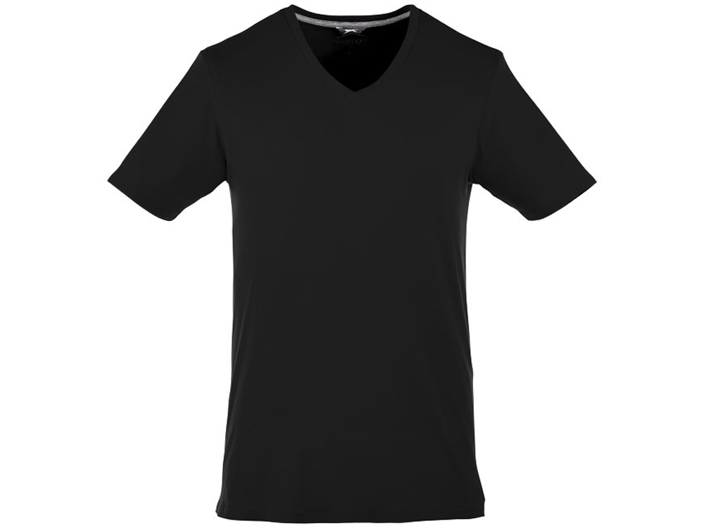 Футболка с короткими рукавами Bosey. Без боковых швов.V-образная горловина. Лента от плеча к плечу. Двойная строчка на воротнике и внизу изделия. Петелька-вешалка контрастного цвета. Комфортный ярлык-трансфер на изделии. Однослойная джерси, 100% хлопок. 140 г/м².Вы можете купить из наличия футболку с короткими рукавами Bosey, чёрную с вашим логотипом прямо сейчас, оформив быструю доставку