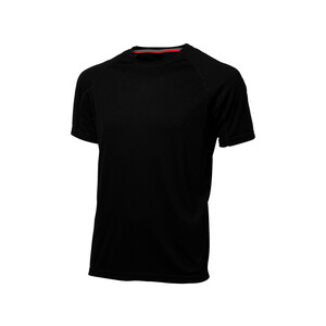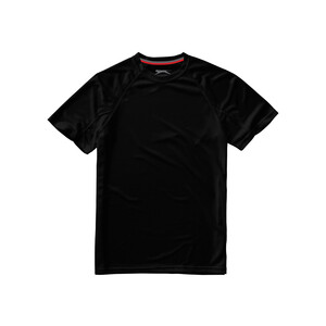 Футболка с короткими рукавами Serve. Прилегающий покрой. Обшивка внутри воротника. Рукава реглан, плоская строчка. Принт Slazenger на шве слева. Полоска на горловине в контрастном цвете. Cool Fit. Сетчатый материал из 100% полиэстера с дышащей поверхностью. 125 г/м².Вы можете купить из наличия футболку "Serve" мужская, чёрную с нанесением прямо сейчас, оформив быструю доставку