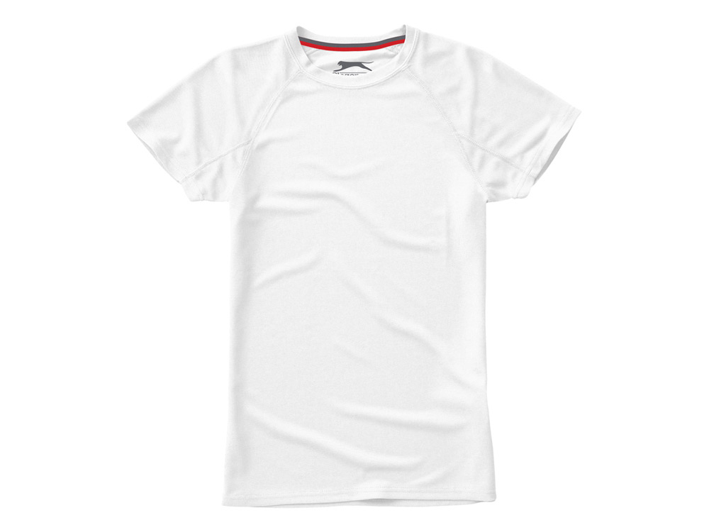 Женская футболка с короткими рукавами Serve. Прилегающий покрой. Обшивка внутри воротника. Рукава реглан, плоская строчка. Принт Slazenger на шве слева. Полоска на горловине в контрастном цвете. Cool Fit. Сетчатый материал из 100% полиэстера с дышащей поверхностью. 125 г/м².Вы можете купить по низким ценам футболку "Serve" женская, белую с нанесением прямо сейчас, оформив быструю доставку