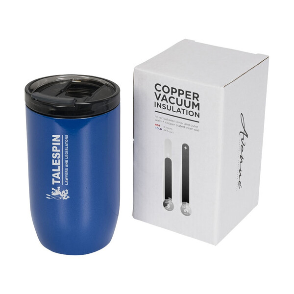 Герметичный термос Lagom 380 мл с медной вакуумной изоляцией. Прочный компактный стакан, идеально подходящий для путешествий. Герметичная откидная крышка с уплотнением и открывающимся отверстием для питья. Стакан с двойными стенками из нержавеющей стали и вакуумной медной изоляцией сохраняет напитки горячими в течение 8 часов и холодными в течение 24 часов. Конструкция стакана предотвращает образование конденсата на внешней стороне. Объем – 380 мл. Предлагается в подарочной коробке Avenue. Нержавеющая сталь.Вы можете купить из наличия герметичный термос Lagom 380 мл с медной вакуумной изоляцией, синий с вашим логотипом прямо сейчас, купив доставку курьером