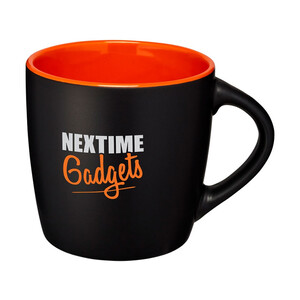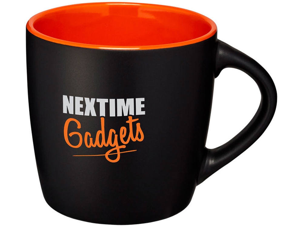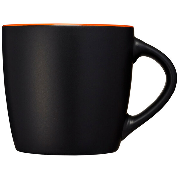 Керамическая чашка Riviera. Чашка с матовым внешним покрытием и цветным акцентом внутри, объем 300 мл. Соответствует EN12875-1. Керамика.Вы можете купить из наличия керамическую чашку Riviera, черный/оранжевую с вашим логотипом прямо сейчас, купив доставку курьером