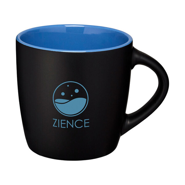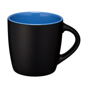 Керамическая чашка Riviera. Чашка с матовым внешним покрытием и цветным акцентом внутри, объем 300 мл. Соответствует EN12875-1. Керамика.Вы можете купить из наличия керамическую чашку Riviera, черный/синюю с нанесением прямо сейчас, купив доставку курьером