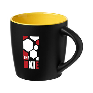 Керамическая чашка Riviera. Чашка с матовым внешним покрытием и цветным акцентом внутри, объем 340 мл. Соответствует EN12875-1. Керамика.Вы можете купить по низким ценам керамическую чашку Riviera, черный/жёлтую с вашим логотипом прямо сейчас, заказав быструю доставку
