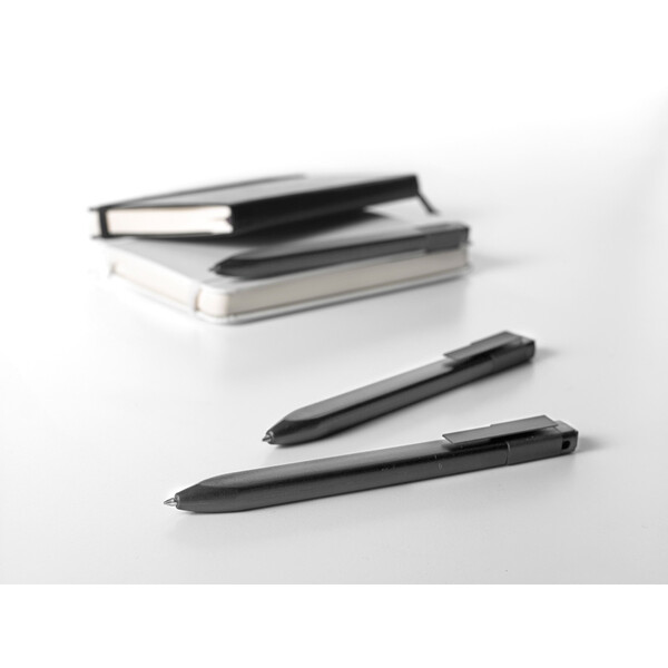 Идеально сочетается с блокнотом Moleskine, специально предназначена для крепления на стороне классической черной обложки. Характеристики: черные чернила; шариковый стержень; сменный стержень; выдвижной наконечник; матовое черное покрытие АБС; черный прорезиненный стальной зажим (зарегистрированный дизайн) с выгравированным логотипом;16 наклеек для оформления ручки.Вы можете купить из наличия классическую Авт. шариковую ручку Click, 0,5 мм, чёрную с нанесением прямо сейчас, оформив доставку курьером