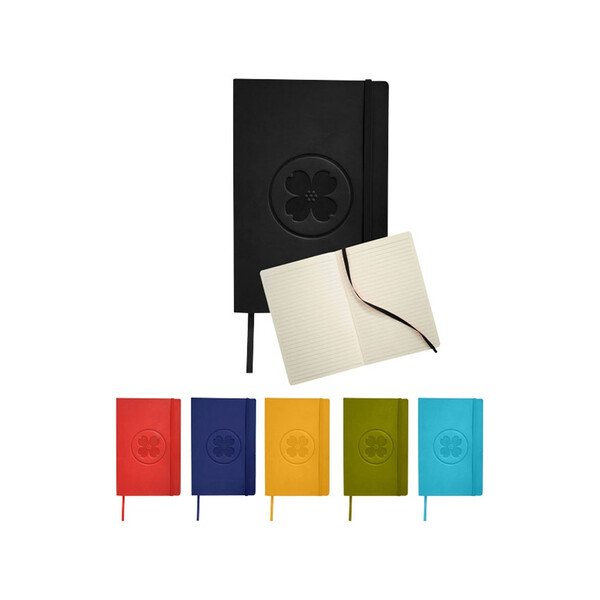 Классический блокнот с мягкой обложкой. Блокнот с мягкой на ощупь обложкой (ориентир размер А5) с эластичной застежкой, закладкой, кармашком для заметок внутри и 80 листов линованной бумаги (80 г/м²). Термо ПУ.Вы можете купить из наличия классический блокнот А5 с мягкой обложкой, жёлтый с вашим логотипом прямо сейчас, купив быструю доставку
