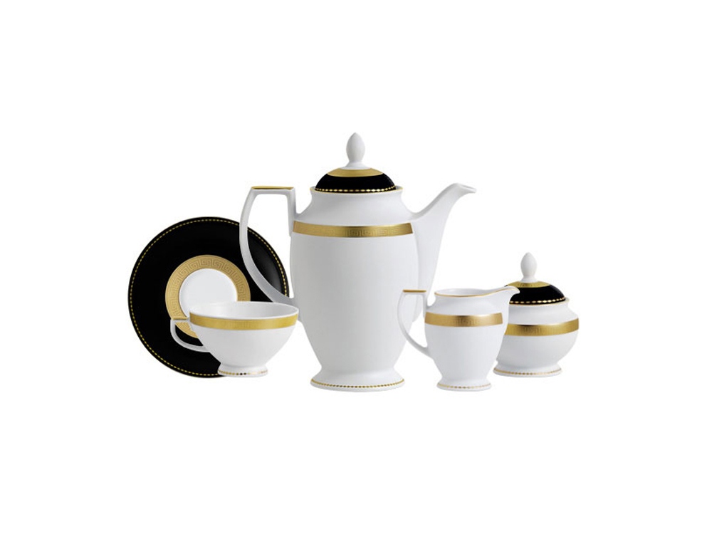 Совершенное сочетание формы и контрастных цветов: белый фарфор выполняет функцию глянцевой канвы для геометрического орнамента золотом на черном фоне. Данная линия является изысканной интерпретацией классического греческого орнамента и спокойных цветов. Эти уникальные произведения отличаются высоким классом и элегантностью. В комплект входят: 6 кофейных чашек, 6 блюдец, молочник, сахарница и чайник.Вы можете купить по низким ценам кофейный сервиз «Блэк-энд-Уайт» на 6 персон. ZEPTER с вашим логотипом прямо сейчас, купив быструю доставку