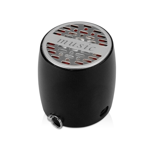 Небольшая компактная колонка с кольцом для ключей и встроенным аккумулятором для 3 часов непрерывной музыки. Колонка включает аудиокабель и подключается к смартфону, планшету или любому другому медиаустройству с 3,5 мм аудиоразъемом. Также включает USB-кабель для зарядки, короткий шнурок.