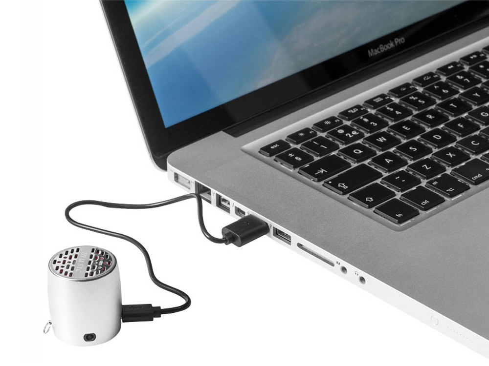 Небольшая компактная колонка с кольцом для ключей и встроенным аккумулятором для 3 часов непрерывной музыки. Колонка включает аудиокабель и подключается к смартфону, планшету или любому другому медиаустройству с 3,5 мм аудиоразъемом. Также включает USB-кабель для зарядки, короткий шнурок.